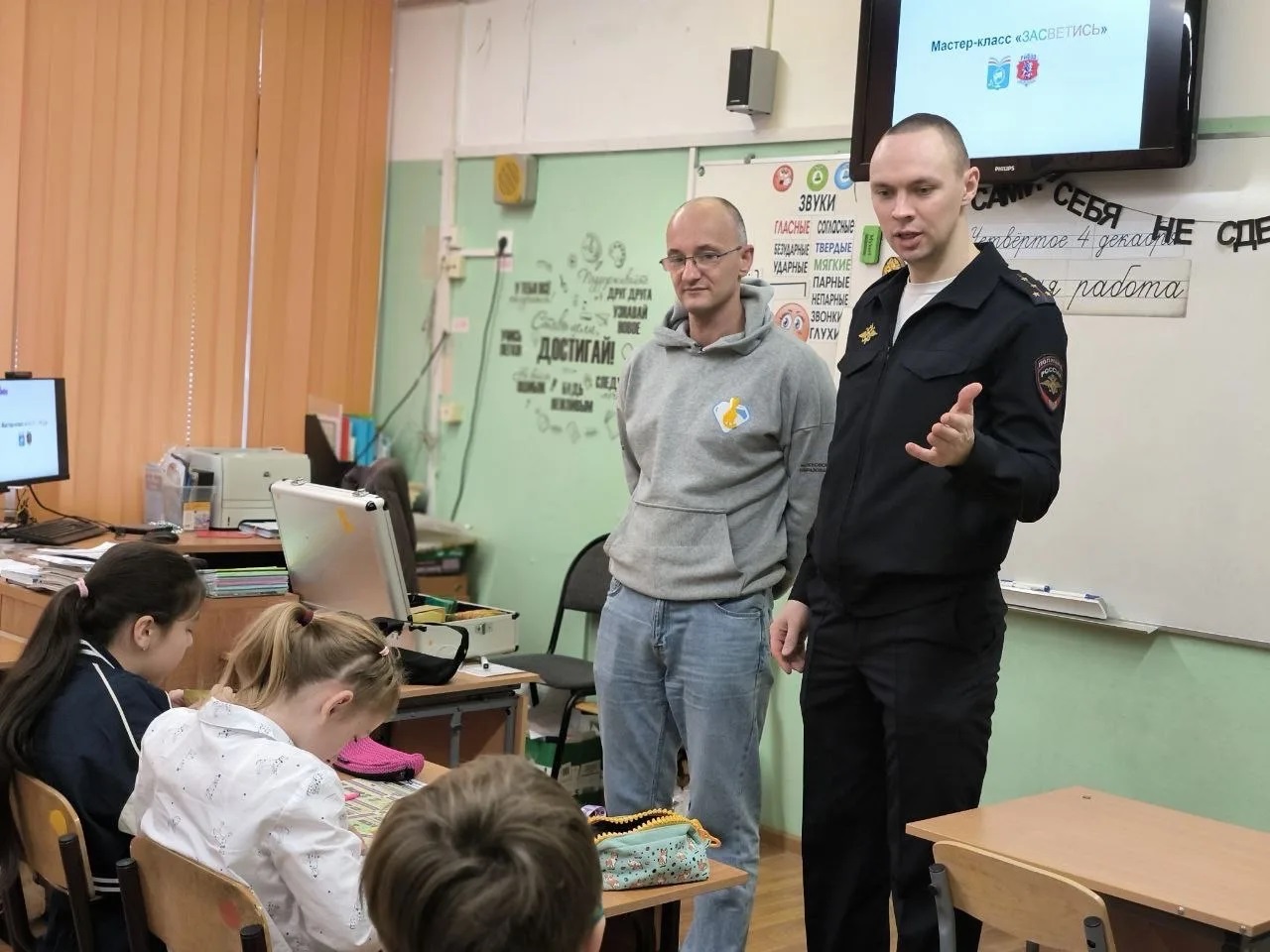 Сотрудник Отдельного батальона ДПС Госавтоинспекции УВД по Восточному административному округу Александр Наумкин провел профилактическое мероприятие для учащихся школы «Новокосино».
